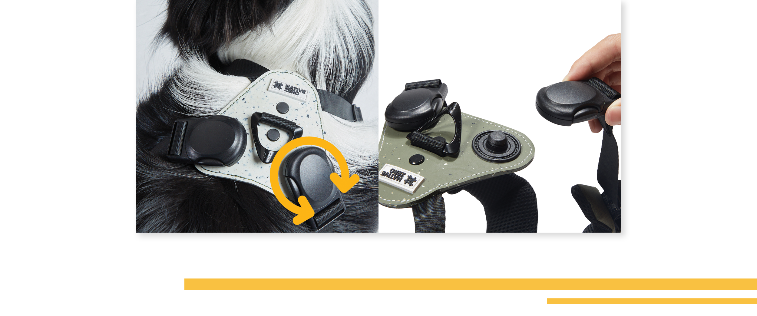 NATIVE ZERO's magnetic buckle system is a quick, secure and satisfying way of securing your dog's harness.